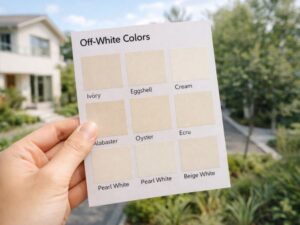 - 屋根が濃いブラウンなら → 黄みのあるオフホワイトがなじみやすい